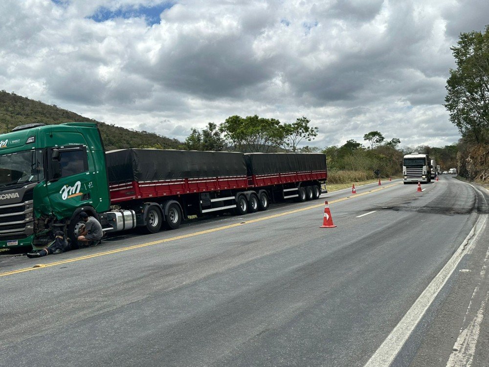 A colisão ocorreu na altura do km 641, trecho conhecido como Serra do Mutum, e o veículo pegou fogo após o impacto. Duas pessoas ficaram feridas.